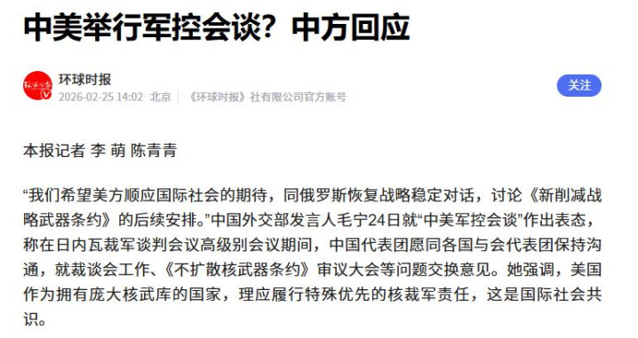 中方的态度非常明确:现阶段要求中国加入核裁军谈判,既不公平也不合理。咱们把话撂在这儿了,除非美国愿意把核武器削减到中国这个水平。